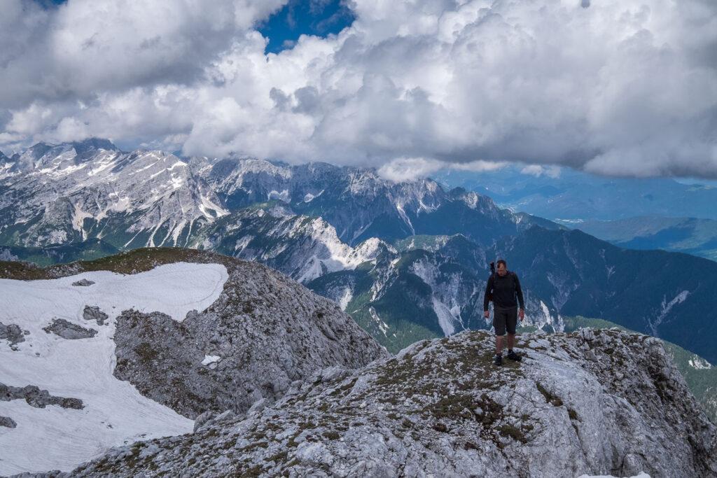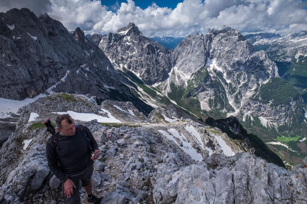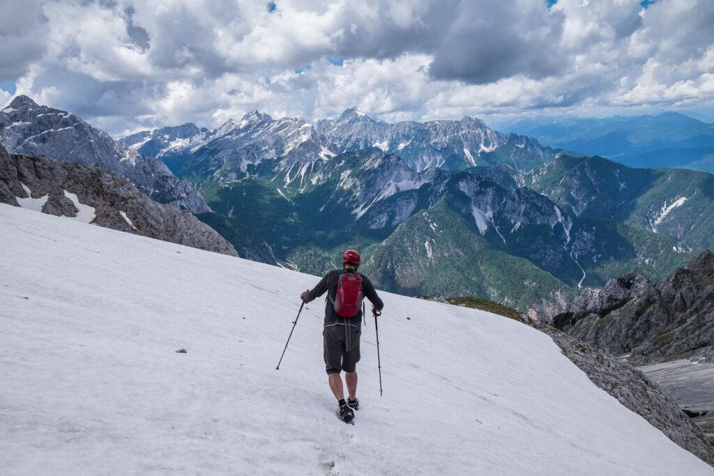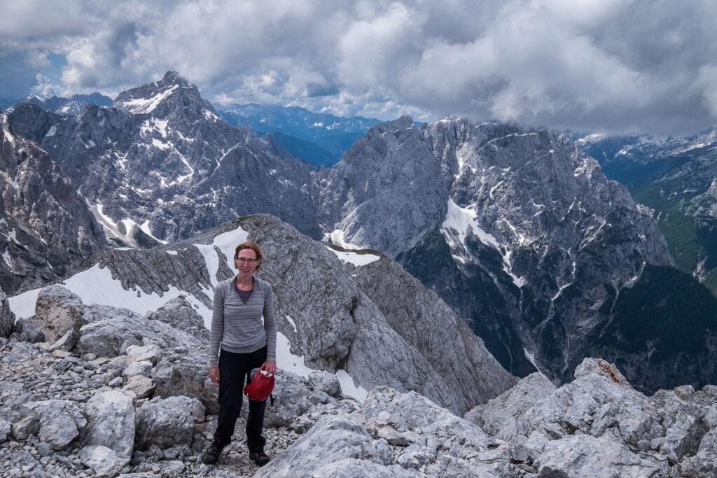 With two days of possible clear weather coming up we went to the TI in Kranjska Gora for trail advice. Don’t bother. Other than the fact that she directed us to the Julijana Agency, they were totally worthless and unaware of current trail conditions. The folks at Julijana, on the other hand spent some time with us discussing the various trail options. This year, 2016, in mid-June there was still quite a bit of snow on the higher trails. Some trails have via feratta sections requiring a helmet and self-belaying equipment. That said not all via feratta trails are the same. Some are difficult requiring climbing skills while for others the equipment is more of a safety precaution. It’s best to check with someone who knows the trails before setting out.
