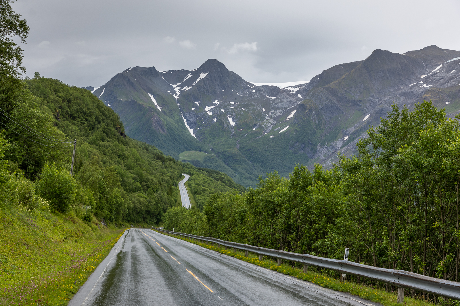 With the stunning scenery once again masked by gloomy weather, I fittingly stopped in Glomfjord on the final push to Bodø. Post also includes an overnight in Bodø before the ferry to Moskenes in the Lofoten Islands.